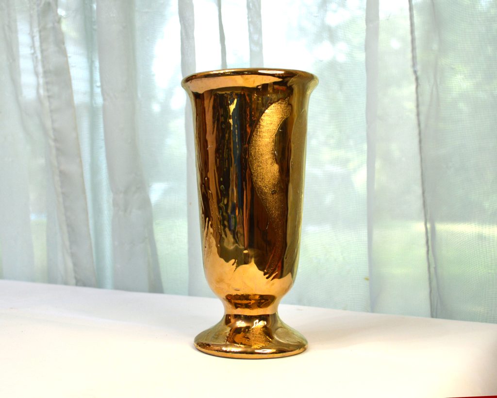 Many household items, both useful and decorative, were produced in Weeping Gold. Vases, planters, figurines, and bowls were all popular and added a touch of Hollywood pizazz to midcentury homes.